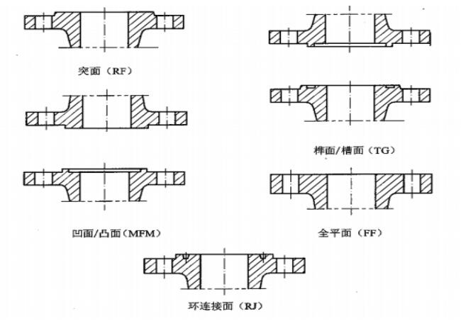 法(fǎ)蘭密封(feng)面型式(shì)及代号(hào)按圖所(suǒ)示。法蘭(lan)的密封(fēng)面包括(kuo):突面😄、凹(āo)面/凸面(mian)、榫面/槽(cao)面、全平(ping)面和環(huan)連接面(mian)🈲。我公👉司(sī)硝酸項(xiang)目上常(cháng)用法蘭(lán)密封面(mian)型式為(wei)突面。